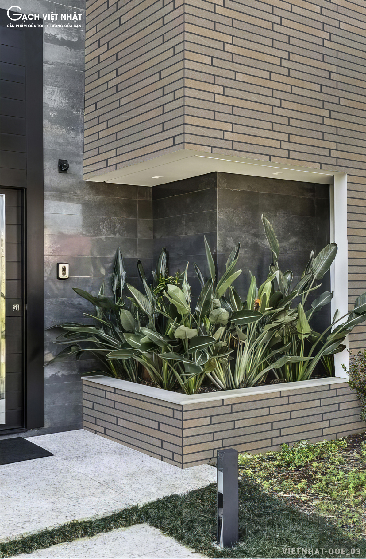 Những viên gạch cho cảm giác nhịp nhàng được tạo ra bởi phong cách bề mặt phẳng và đá làm sáng các bức tường. Những bóng đổ sắc nét rơi xuống kết cấu mềm mại của viên gạch tô màu cho bức tường một cách duyên dáng.
